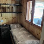 Slaapkamer 2 heeft een stapelbed, een los eenpersoonsbed en een opbergkast
