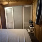 Slaapkamer 1 heeft een tweepersoonsbed en grote kastenwand