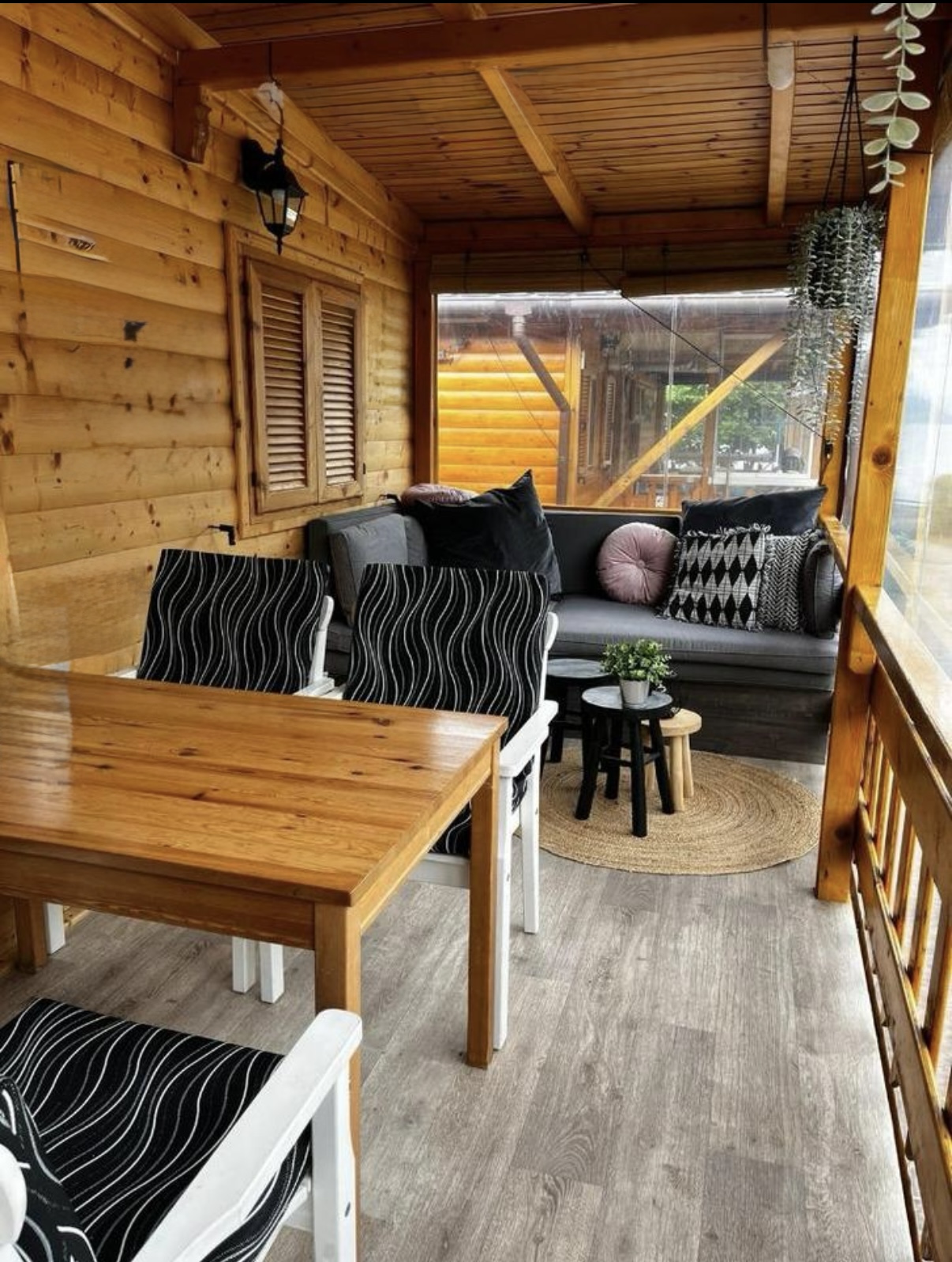 • Veranda heeft TWEE  loungebanken én een tafel met eetstoelen.
